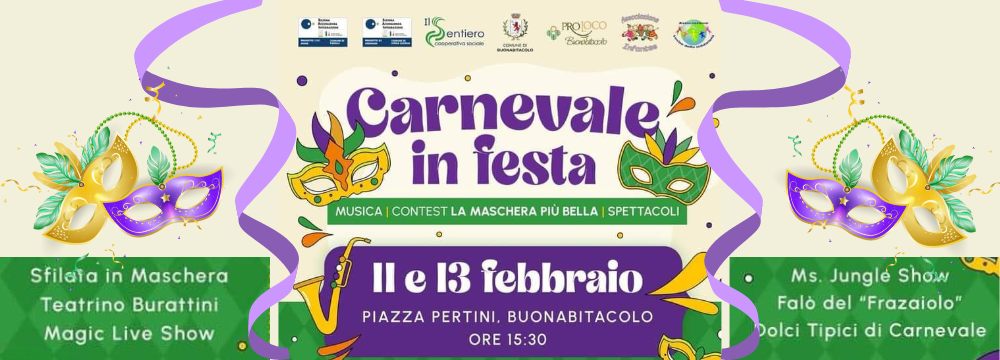 Il Carnevale sta per arrivare a Buonabitacolo e l’atmosfera sarà allegra e colorata in Piazza Pertini 2 giorni di festa 11 e il 13 febbraio!…